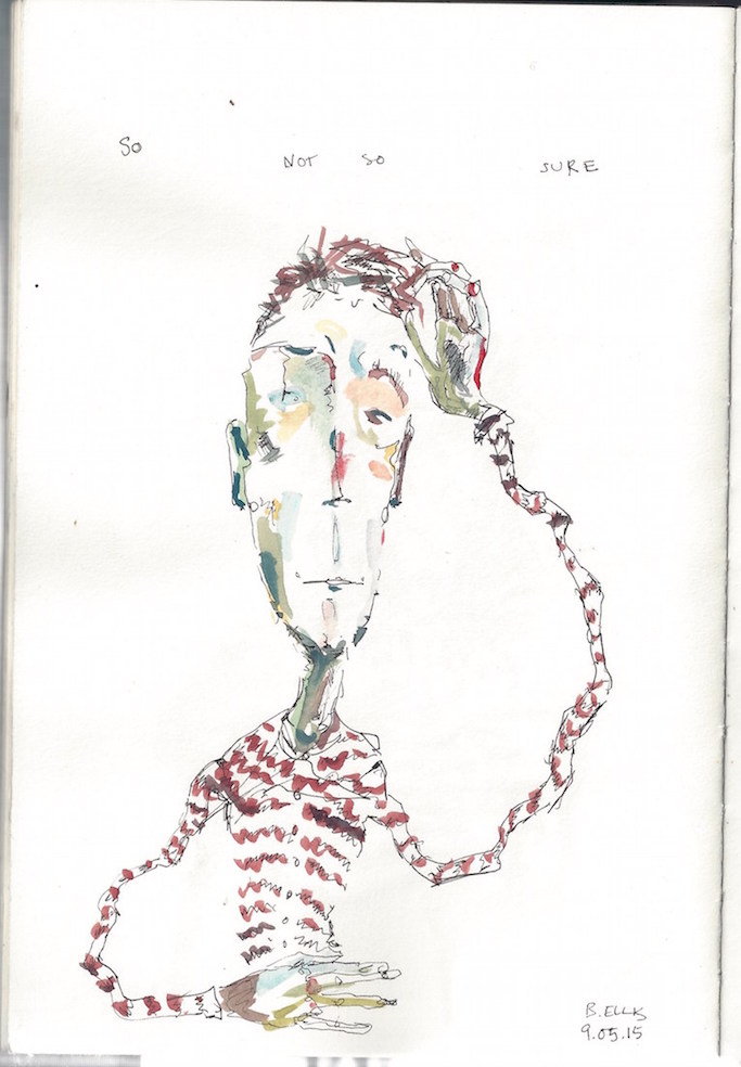 Mostly created in the same manner, with no prior vision, the pen reaching around on the page looking for shapes and finding familiar faces and shapes.