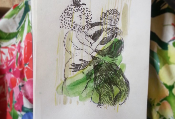 My sketchbook does feel like a living thing. It’s as though the life of the characters that get drawn into it, from my travels and my mind, seeps through the pages and emerges again, further on, in twists and blooms of colour that have a life of their own.