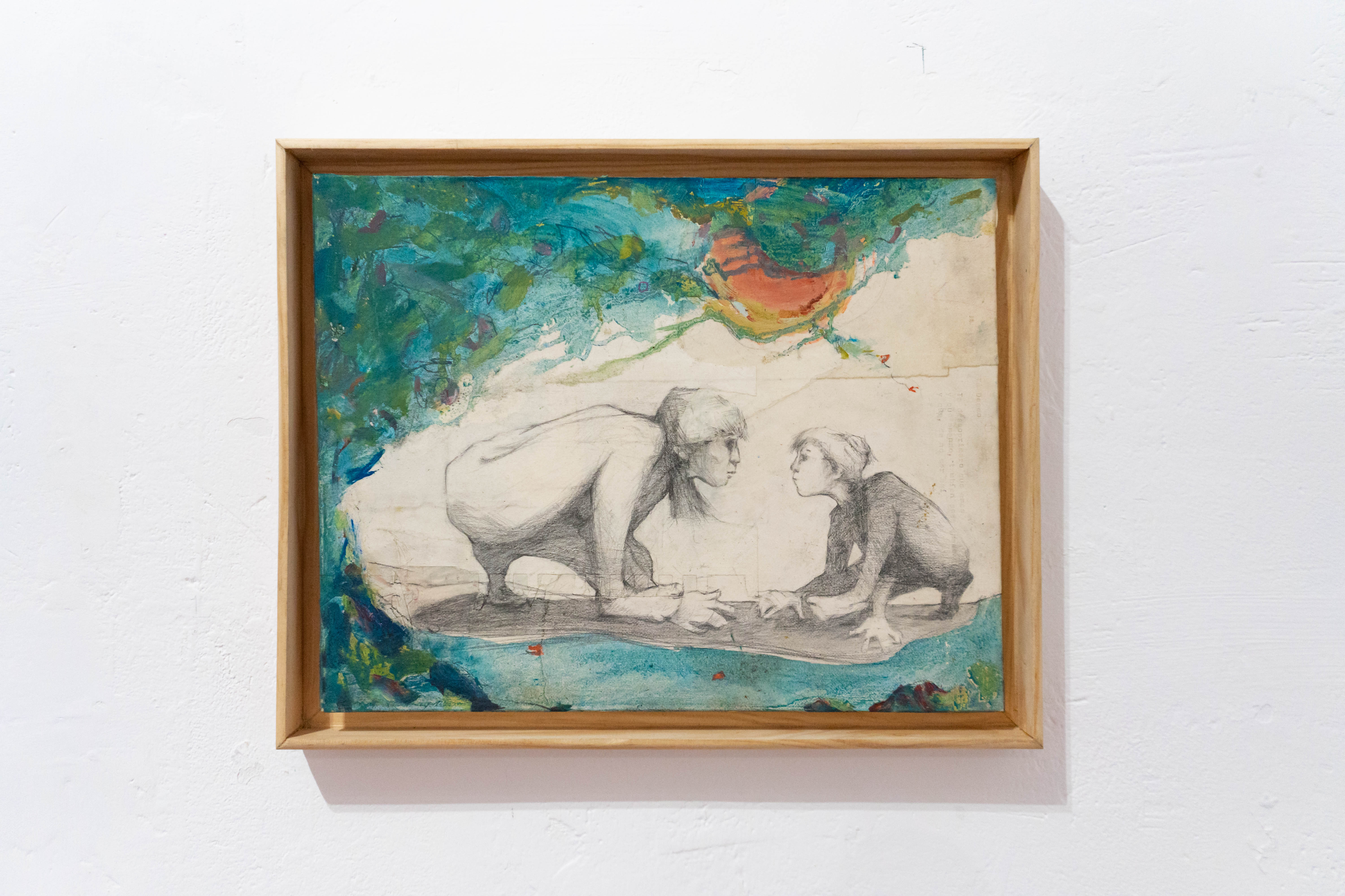 As a multidisciplinary artist, Blanche Ellis creates her visual work in the context of poetry, movement and music. Moving freely between mediums and surfaces, between figurative and abstract, she interweaves drawing, painting, collage and fragments of text from her own poems, thoughts or daily notes, handwritten or typed on an old typewriter. This playfulness of materials generates a tactile presence and invites the viewer into the artist’s creative process, one of dreamlike association and vividness in which the artist endeavours to “play like children: seriously”.