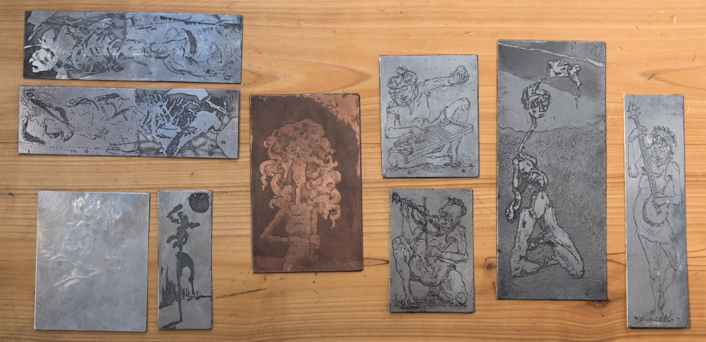 A selection of etchings in a mix of techniques.
