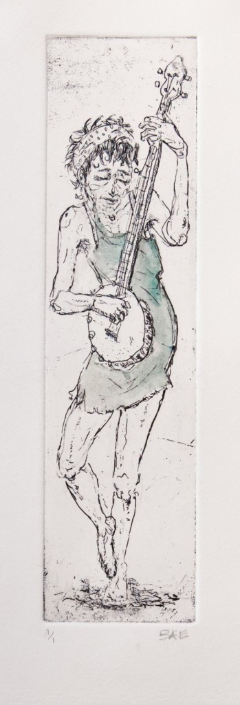 I am a singer, banjo, guitar and washboard player and my visual art is very connected to music.