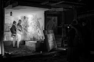 b&w night view of caravanserai 21artists mural – blanche ellis