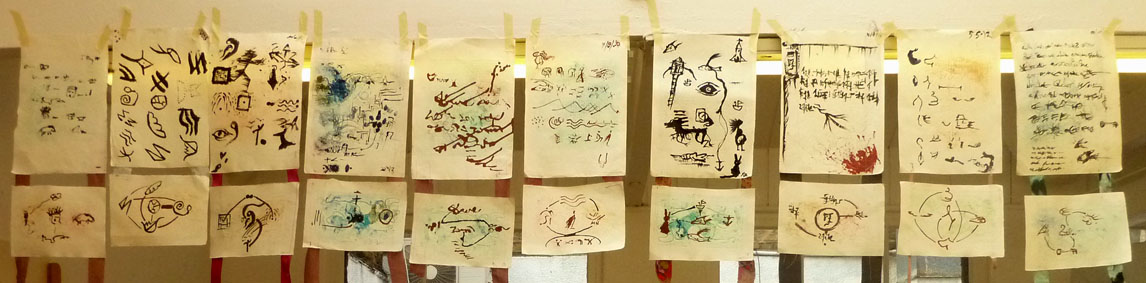– I found that the duration was important to how participants felt. The ritual-like process of the project, where symbols were not only invented and drawn, but selected, re-inscribed by a second hand and then linked together into a balanced picture, created a sense of ceremony and gave weight to each expression and individual language that emerged.