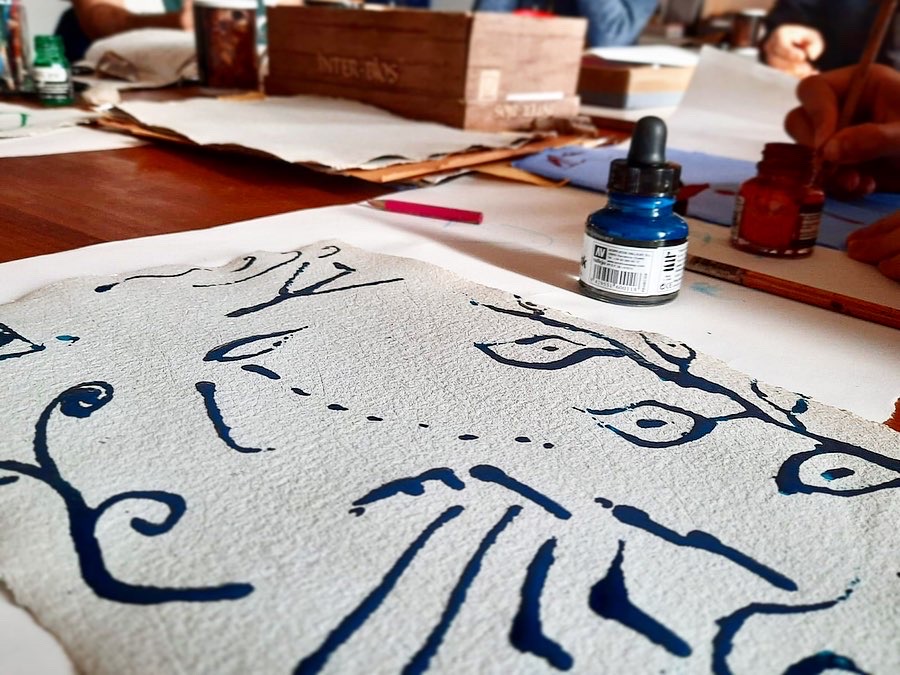 Below are some photographs from various letter-workshops with both adults and children: